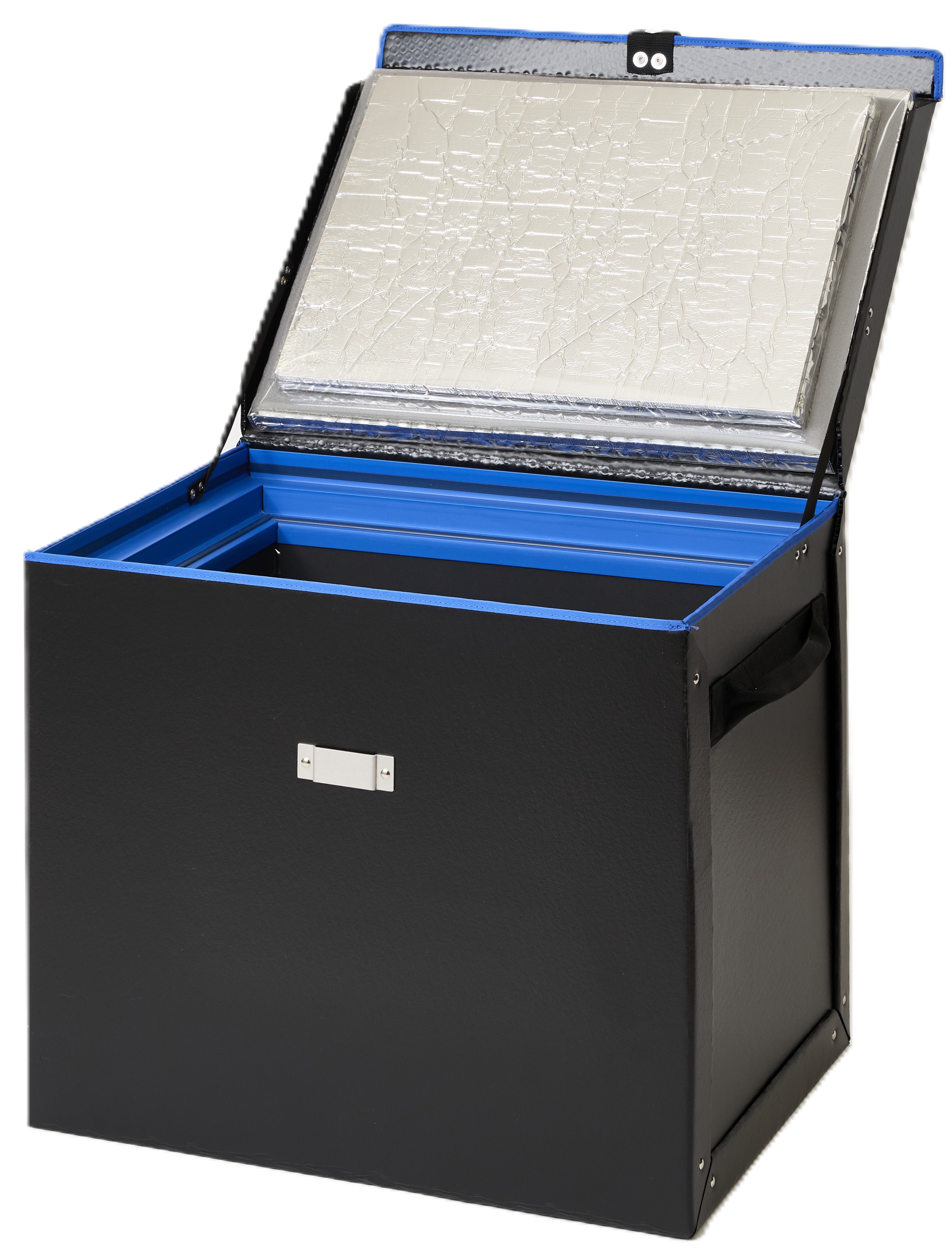 - 内外装の素材にアルミ蒸着フィルム、インナーに断熱材を使用している遮熱性能と断熱性能を併せ持つ軽量 なハンドキャリー用のボックスです。