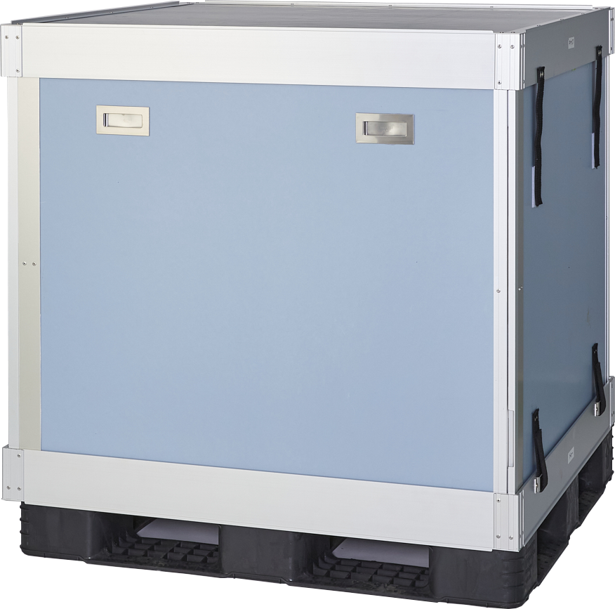 - 壁にウレタンを注入した、断熱性のある新しいタイプの折りたたみコンテナです。