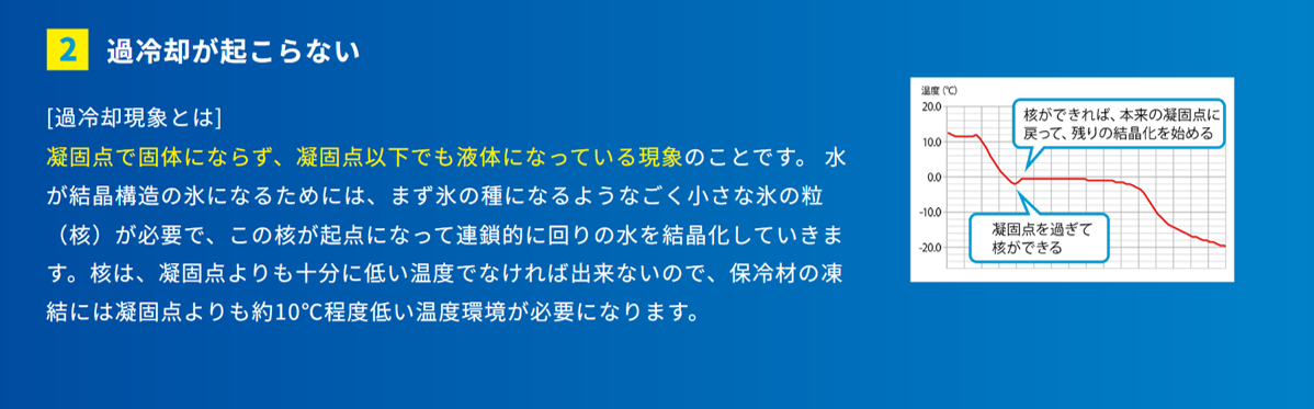 従来の冷凍用保冷剤は凍りにくいために-35℃以下の冷凍庫が必要でした。
