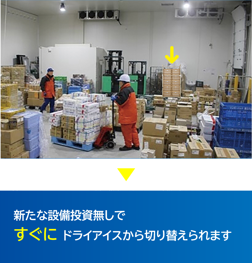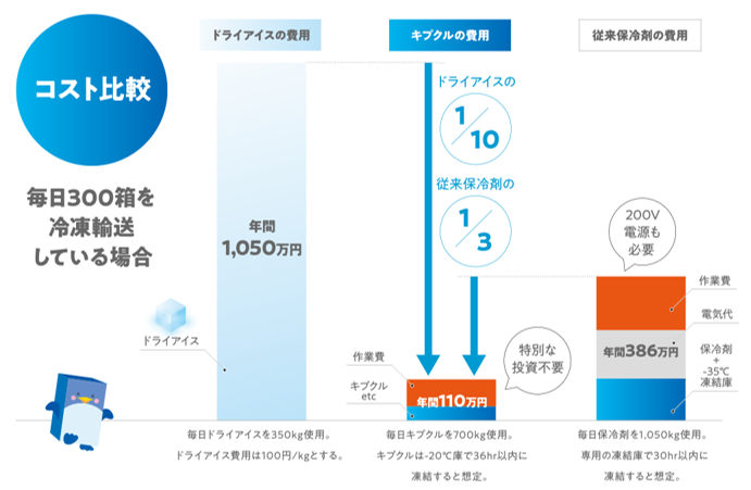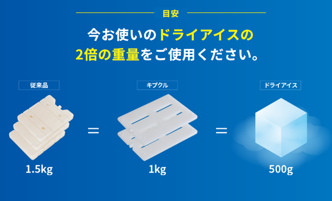 キプクルを使うことで、ドライアイスの大幅削減(ゼロ化)が実現できます。