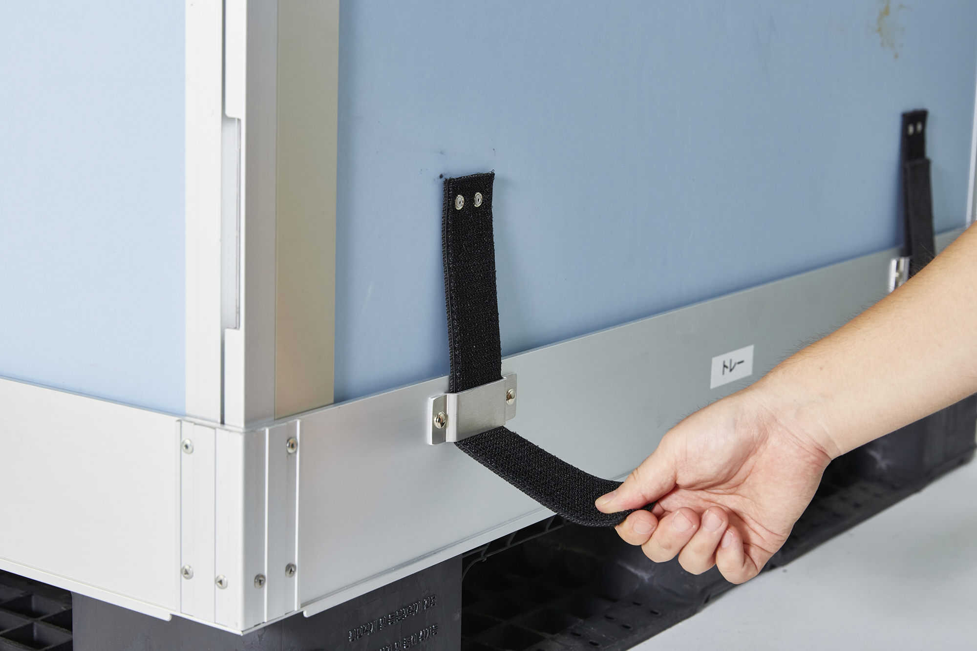 商品や原料の輸送時に使用されている樹脂製パレットを、大型の保冷ボックスとして使用可能にする断熱パネルシステムです。